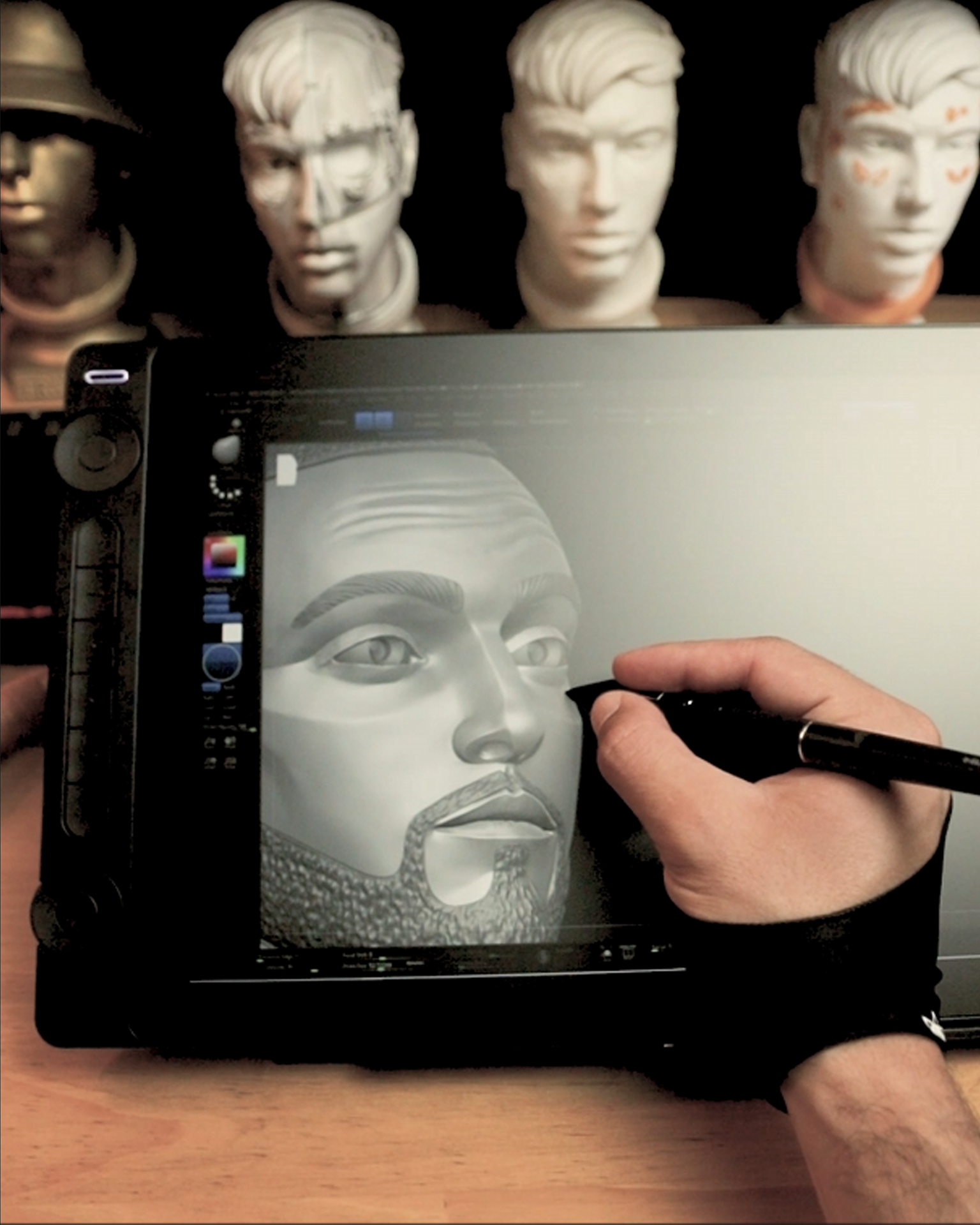I began studying ZBrush, Substance Painter, and Blender at the end of 2020. In 2022, I published my first digital portrait of an Argentinian artist — Trueno — a piece that went viral and marked the beginning of my journey portraying cultural icons from Latin American music and urban scenes.